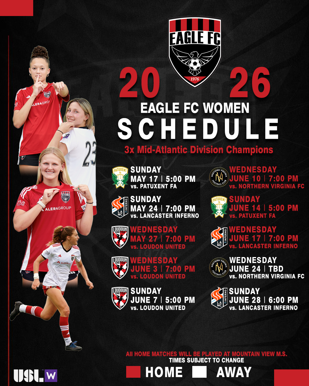 MECHANICSBURG, Pa. – Eagle FC Women have officially released their 2026 USL W League schedule as the club prepares for its fifth season competing in the Eastern Conference’s Mid-Atlantic Division.
